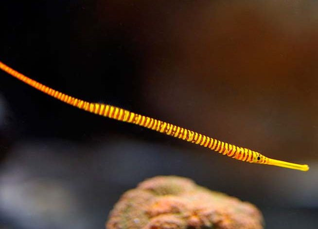 نگهداری از این ماهی در آکواریوم می تواند بسیار مشکل و دردسر ساز باشد زیرا تغذیه این ماهی بسیار مشکل است این ماهی ترجیح می دهد از مجموعه ای از غذاهای زنده مثل سخت پوستان و بچه ماهیان بسیار کوچک تغذیه کند پس برای تغذیه این ماهی می توانید از میگوی آرتمیای بالغ زنده و غنی سازی شده با ویتامین استفاده کنید ولی نباید این غذا را به عنوان غذای همیشگی در نظر بگیرید و لازم است از مجموعه غذاهای مختلفی برای تغذیه این ماهی استفاده کنید. بهتر است برای نگهداری از این ماهی یک آکواریوم با ظرفیت حداقل 180 لیتر را با سکنینی آرام و جریان بسیار کم در نظر بگیرید. به همراه این ماهی می توانید از ماهیان خجالتی کوچکی مثل گوبی های کوچک، اسب های دریایی، فایر فیش ها و سایر پایپ فیش ها نگهداری کنید. این ماهی ممکن است توسط شقایق ها و یا انواع مرجان های مهاجم گزیده شود مثل مرجان های مغزی حتی این ماهی ممکن است توسط انواع سخت پوستان مثل میگو ها و خرچنگ ها آسیب ببیند.