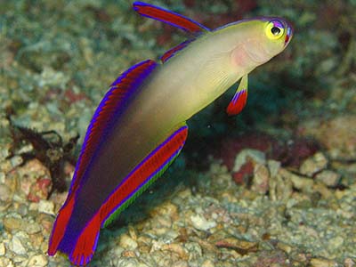 این ماهی در سال 1973 در اقیانوس آرام کشف شد. برای نگهداری از این ماهی لازم است یک آکواریوم با حداقل ظرفیت ۳۰ لیتر در اختیار داشته باشید که با صخره های زنده و بستر ماسه ای دکور شده باشد همچنین لازم است درب آکواریوم را بسته نگاه دارید تا از پریدن این ماهی به بیرون جلوگیری کنید. به ندرت دیده شده است که این ماهی رفتار پرخاشگرانه ای با سایر گونه ها داشته باشد ولی با گونه های مشابه ممکن است بر سر قلمرو نزاع کند. برای تغذیه این ماهی کف خوار لازم است از دامنه وسیعی از غذاهای دریایی گوشتی ریز شده و غنی شده با ویتامین استفاده کنید و یا از گرانول های مخصوص فرآوری شده کمک بگیرید. توجه داشته باشید در صورت عدم غنی سازی غذا با ویتامین ها به مرور زمان ممکن است رنگ این ماهی از بین برود.