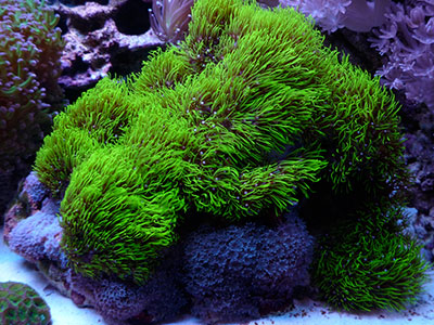 این مرجان اصولا به صورت مجموعه از پلیپ های بسیار زیاد بر روی یک صخره، اسکلت مرجانی و یا حتی جلبک ها دیده می شود. هر پلیپ این مرجان دارای هشت بازوی مستقل است که از آنها برای شکار کردن استفاده می کند. این مرجان بسیار صلح طلب است و به راحتی می توان آن را در آکواریوم قرار داد. این مرجان ممکن است توسط مرجان های مهاجم مجاور گزیده شده و از بین برود پس لازم است فاصله آن تا مرجان های مجاور حفظ شود. این مرجان بسیار مقاوم و شرایط نگهداری ساده ای داشته و به خوبی در آکواریوم رشد می کند. برای نگهداری از آن به نور و شدت جریان زياد و قوی نیازدارید. این مرجان برای رشد نیاز به ید و عناصر نادر دارد که لازم است میزان آن در آکواریوم شما حفظ شود. این مرجان به کمک جلبک های همزیست خود توسط عمل فتوسنتز غذا سازی می کند ولی می توانید آن را به کمک مایعات پلانکتونی غنی شده مخصوص مرجان تغذیه کنید.