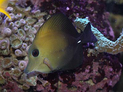 برای نگهداری از این گونه به آکواریومی با حجم حداقل 450 لیتر نیازدارید که با صخره های زنده دکور شده باشد تا بتوانید هم فضای لازم جهت شنا کردن و هم فضای لازم جهت مخفی شدن را در اختیار آن قرار دهید. این گونه رفتار تهاجمی با سایر گونه های جراح ماهیان دارد ولی در رابطه با گونه های دیگر بسیار ملایم است و بهتر است فقط یک ماهی از این گونه را در آکواریوم خود داشته باشید. اگر چه تمامی جراح ماهیان به همراه ماهیان دیگر از غذاهای گوشتی استفاده می کنند ولی لازم است که انواع جلبک های دریایی ماکرو نیز در اختیار آنها جهت تغذیه قرار داده شود. این دسته ماهیان انتخاب خوبی برای کنترل رشد جلبک ها در آکواریوم هستند.