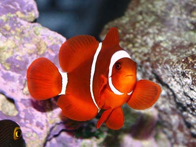 دلقک ماهی مارون دارای یک بدن پهن و قرمز به همراه یک نوار سفید در بالای سر، یک نوار در ناحیه مرکزی و یک نوار در جلوی باله مخرجی است. این ماهی نسبت به دلقک ماهی های دیگر بسیار پرخاشگر بوده و به سختی می توان آن را به همراه دلقک ماهی های دیگر در یک آکواریوم کوچک نگهداری کرد. این گونه غذاهای گوشتی را جهت تغذیه ترجیح می دهد مانند میگوی یخ زده. بسیار مشکل می توان بیشتر از یک دلقک ماهی مارون را در یک آکواریوم نگهداری کرد به غیر از مواردی که جفت نر و ماده را در اختیار داشته باشید.