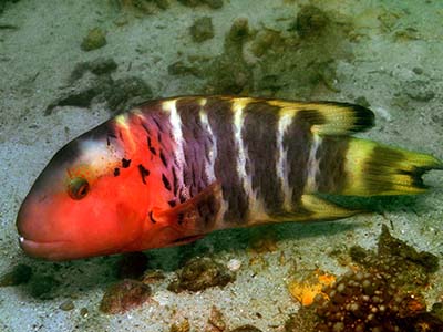 این گونه بسیار کمیاب می باشد و می تواند بسیار بزرگ شود. اصولا رفتار آرامی داشته و بسیار منزوی است و باید به تنهایی در يک آکواریوم با ماهی های صلح طلب نگهداری شود. ممکن است در آکواریوم ماسه ها و تکه های صخره های جابجا کرده و به دنبال بی مهرگان و سخت پوستان و حتی ماهی های کوچک جهت تغذیه بگردد. این ماهی اصولا در اطراف تپه های مرجانی دیده می شود و برخی مواقع برای استراحت در بستر دریای آرام می گیرد. برای تغذیه این ماهی می توانید از غذاهای فراوری شده با پایه پلانکتونی استفاده کنید.