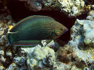 این ماهی با نوار های رنگارنگ بسیار زیبا که در تمام طول بدن آن کشیده شده است به شکل یک رنگین کمان متحرک به نظر می رسد. برای نگهداری از این ماهی به آکواریومی با ظرفیت حداقل 250 لیتر به همراه صخره های زنده و فضایی برای شنا کردن و بستری به عمق حداقل ۶ سانتی متر از ماسه نرم نیازدارید زیرا این ماهی برای مخفی شدن به زیر ماسه های بستر می رود. از این ماهی در آکواریوم های تپه مرجانی نیز نگهداری کنید و این ماهی در نظافت و حذف انواع کرم های انگلی روی سطح مرجان ها به شما کمک می کنند. شما می توانید از انواع میگو های کوچک آماده و همچنین غذاهای مخصوص ماهیان گوشت خوار و یا حتی تکه های بسیار کوچک میگو و ماهی غنی شده با ویتامین جهت تغذیه این ماهی استفاده کنید.