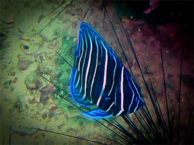 این فرشته ماهی در بین غواصان و آکواریوم داران به ایجاد یک صدای خور خور مانند زمانی که به آنها نزدیک شده و احساس خط می کنند معروف هستند. تکثیر این ماهی بسیار مشکل است و تشخیص جنسیت نر و ماده این ماهی از روی ظاهر غیر ممکن می باشد. این ماهی با بدنی پهن و باله های بزرگ به آکواریمی با ظرفیت حداقل ۸۰۰ لیتر به همراه صخره های زنده فراوان نیاز دارد تا هم فضای کافی برای شنا کردن و هم فضاهای مناسب برای مخفی شدن را در اختیار داشته باشد. این ماهی برای نگهداری در آکواریوم های تپه مرجانی مناسب نمی باشد و به مرجان های نرم ویا سخت پلیپ بزرگ، بی مهرگان حساس و صدف های بزرگ آسیب می رساند. برای تغذیه این ماهی می توانید از انواع غذاهای آماده غنی شده با کیفیت بالا که برای فرشته ماهی ها تولید شده است به همراه جلبک های دریایی و اسپیرولینا و انواع تکه های گوشت ماهیان دریایی و میگو غنی شده با ویتامین و عصاره اسفنج های دریایی استفاده کنید. توجه داشته باشید که لازم است این ماهی سه بار در روز تغذیه شود.