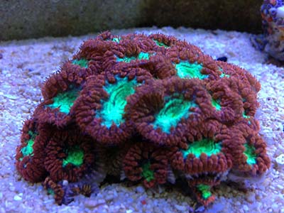 این مرجان نسبتا مقاوم است و گزینه مناسبی برای آکواریوم های تپه مرجانی تازه می باشد. جریان کم و نور متوسط می تواند یک فضای ایده آل را برای زندگی این مرجان فراهم کند. این مرجان صلح طلب بوده و بهتر است فاصله آن تا مرجان های مهاجم دیگر درون آکواریوم حفظ شود. بهتر است برای رشد و سلامت کامل این مرجان میزان عنصر کلسیم، استرانسیوم و عناصر نادر در آب در حد مناسبی حفظ شود. این مرجان دارای جلبک های زوگزانتای همزیست می باشد و اصولا در آکواریوم نیازی به تغذیه ندارد و می تواند غذای مورد نیاز خود را از طریق عمل فتوسنتز تولید کند ولی می توانید به صورت دوره ای از غذاهای مخصوص بی مهرگان با کیفیت بالا برای تغذیه این مرجان استفاده کنید.
