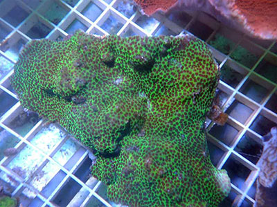 مرجان مونیپورا پوشش ای از جمله مرجان های سخت پلیپ کوچک است. این مرجان در رنگ های بسیار متنوعی یافت می شود که به نسبت گونه های دیگر مرجان های SPS رشد بسیار سریع تری دارد. میزان رشد این مرجان به عوامل مختلفی از جمله میزان نور و شدت جریان و همچنین محل قرار گیری مرجان در آکواریوم وابسته است. این مرجان از جمله پر طرفدار ترین مرجان های SPS در بین آکواریوم داران مرجانی است و به آنها در ایجاد رنگ بر روی صخره هایشان کمک می کند. زمانی که پلیپ های این مرجان باز می شود ظاهر بسیار خاص و مخملی دارد. این مرجان بسیار صلح طلب است و لازم است در نزدیکی مرجان های صلح طلب دیگر در آکواریوم قرار داده شود. این مرجان در بین مرجان های SPS از جمله مرجان های بسیار مقاوم می باشد و احتیاج به میزان رسیدگی متوسط دارد. این مرجان به نور متوسط تا زیاد به همراه جریان متوسط تا قوی نیاز دارد. برای حفظ سلامت این مرجان لازم است مقادیر کلسیم، منیزیم، استرانسیم و عناصر نادر در آب حفظ و کنترل شود. این مرجان بخش زیادی از غذای خود را از طریق عمل فتوسنتز بدست می آورد اما می توانید به صورت دوره ای آن را با غذای مایع مخصوص مرجان های سخت و یا انواع زئوپلانکتون های مرده تغذیه کنید.