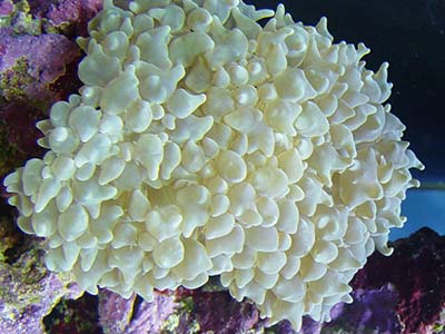 مرجان حبابی مرواریدی یکی از مرجان های بسیار زیبا در بین مرجان های LPS بوده که اصولا در رنگ های سبز، بنفش و سفید قابل مشاهده است. این مرجان دارای یک اسکلت سخت بوده و زمانی که پلیپ های آن باز می شود کل ساختار اسکلیتی آن را می پوشاند. این مرجان به میزان نور متوسط و جریان آب ضعیف تا متوسط نیاز دارد. برای حفظ سلامت این مرجان لازم است میزان کلسیم، استرانسیم و مابقی عناصر نادر در آب به مقدار لازم وجود داشته باشد. بهتر است این مرجان را به صورت هفتگی با میگوهای کوچک و یا پلانکتون های بزرگ تغذیه کنید. توجه داشته باشید که این مرجان بسیار مهاجم بوده و بازو های خود را جهت نیش زدن مرجان های مجاور و حتی شما ممکن است گسترش دهد پس در هنگام جابجایی باید بسیار با احتیاط عمل کنید.