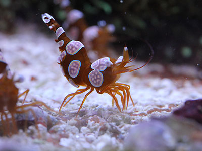 این میگو به دلیل نحوه حرکت خود بسیار مشهور بوده و گزینه بسیار جالبی برای اضافه کردن به آکواریوم های تپه مرجانی است. در آکواریوم های خانگی این میگو بیشتر در اطراف پلیپ های مرجانی و شکاف صخره های زنده ساکن می شود و اصولا بدون ترس در آکواریوم به دنبال تکه های غذای باقی مانده پرسه می زند. برای نگهداری این میگو در شرایط ایده آل بهتر است یک گروه کوچک از آنها را به آکواریوم خود اضافه کرده و به کمک غذاهای پلانکتونی وفراوری شده و تکه های گوشت ماهی یا میگو آنها را تغذیه کنید. این میگو اصولا رفتار آرامی با سایر میگو ها و یا ماهی های دیگر در آکواریوم دارد. توجه داشته باشید این میگو را نباید به آکواریومی هایی که در آنها ماهی های میگو خوار وجود دارند اضافه کنید. این میگو بسیار سریع رشد می کند و حدودا هر یک ماه یک بار پوست اندازی می کند و تا حدود ۴ سانتی متر رشد خواهد کرد. لازم است در زمان انتقال این میگو بسیار دقت کرده زیرای این میگو به تغییرات شرایط شوری و PH بسیار حساس است. مشابه دیگر بی مهرگان این میگو نمی تواند مقادیر بالای نیترات و پایین مس را تحمل کند و برای پوست اندازه خود به مقادیر مناسب ید در آب نیاز دارد.