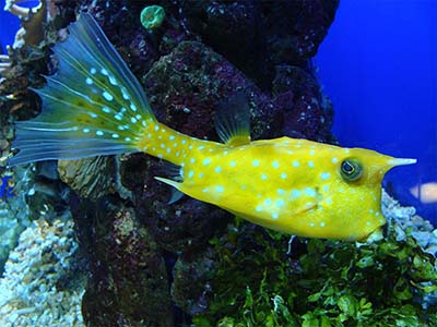 در صورت امکان لازم است این ماهی به عنوان اولین ماهی به آکواریوم اضافه شود. در صورتی که قصد اضافه کردن چندین ماهی از این گونه را به آکواریوم خود دارید لازم است آکواریوم بسیار بزرگی به همراه مقادیر بسیار زیاد صخره زنده حاوی جلبک در اختیار این ماهی ها قرار دهید. در صورتی که قصد اضافه کردن این ماهی به آکواریوم های تپه مرجانی را دارید دقت کنید که این ماهی ممکن است به انواع کرم های لوله ای شما آسیب برساند. در صورتی که این ماهی در شرایط مناسب و درست به آکواریوم معرفی شود طول عمر بسیار بالایی خواهد داشت. مشابه مابقی جعبه ماهی ها این ماهی نیز ممکن است در زمان بروز استرس از خود سم ترشح نماید که می تواند در آکواریوم های کوچک باعث از بین رفتن مابقی ساکنین آکواریوم شود. توجه داشته باشید که این ماهی همه چیز خوار است و لازم است با غذاهی گوشتی و جلبکی تغذیه شود. این ماهی به آرامی تغذیه می کند و نباید با ماهی هایی که بسیار سریع و تهاجمی تغذیه می کنند در یک آکواریوم نگهداری شود.