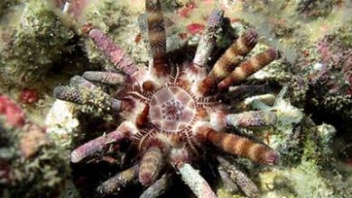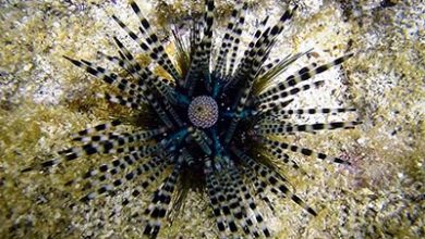 Zebra sea urchinBanded Longspine Urchin / Hatpin UrchinEchinothrix calamarisDiadematidae توضیح کوتاه این توتیا به توتیای خاربلند نواری نیز شناخته می…