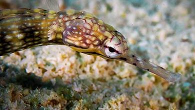 Dragonface PipefishCorythoichthys haematopterusSyngnathidae توضیح کوتاه این پایپ فیش شنا گر بسیار ضعیفی است و ترجیح می دهد برای حرکت رفتاری…