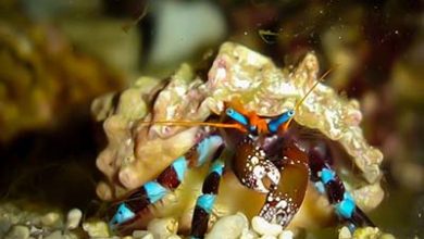Electric Blue Hermit CrabCalcinus elegansDiogenidae توضیح کوتاه خرچنگ های منزوی اصولا در پوسته حلزون های مختلف زندگی می کنند و…