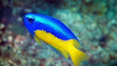 Arnazae damselfishChrysiptera arnazaePomacentridae توضیح کوتاه دارای رنگ های آبی و زرد بسیار درخشان است و گاهی با دامسل دم زرد…