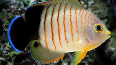 Red Stripe AngelfishEibl’s Angelfish / Orangelined AngelfishCentropyge eibliPomacanthidae توضیح کوتاه این فرشته ماهی با نوارهای نارنجی قرمز و دم مشکی…