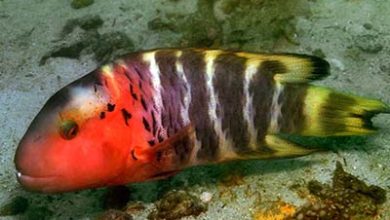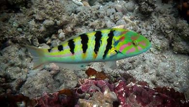 Barred Thicklip WrasseHemigymnus fasciatus Labridae توضیح کوتاه ممکن است در آکواریوم ماسه ها و تکه های صخره های جابجا کرده و…